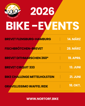 Zeit, euch einen Ausblick auf unsere Termine für 2026 zu geben. Es ist unser Standard-Programm von 4 Brevets, einem Gravel-Ride und der Bike Challenge Mittelholstein am 21. Juni 2026. Etwas